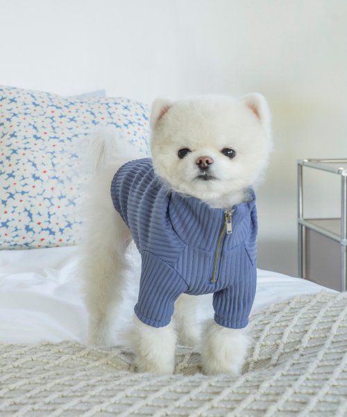 | Product Description | [monplisse] [Dog clothes] Pleated collar zip-up pullover (blue) |