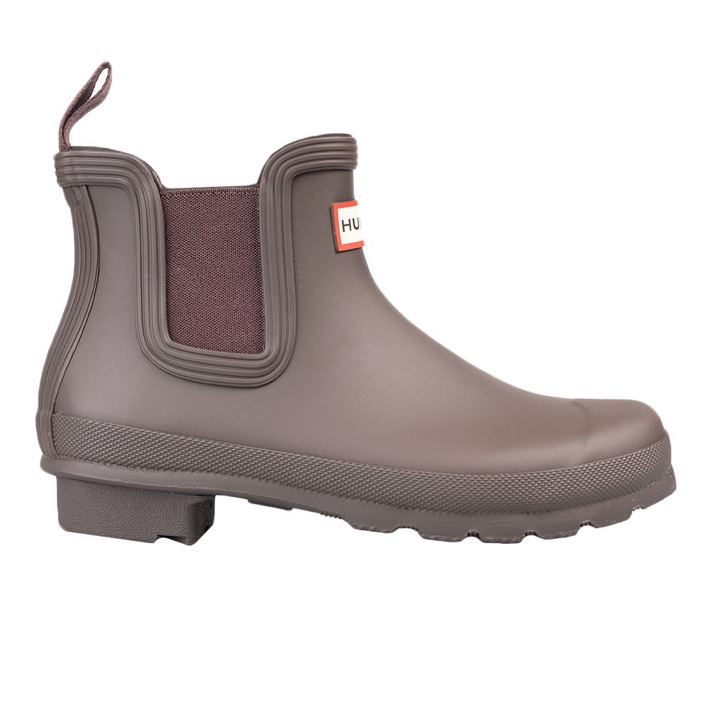 | Product Description | The classic Original Hunter Wellington has been reworked into a fashionable, short chelsea boot. Constructed in the same rubber construction as the wellingtons, the waterproof boot features a pull tab to the heel and signature Hunter branding to the front. |