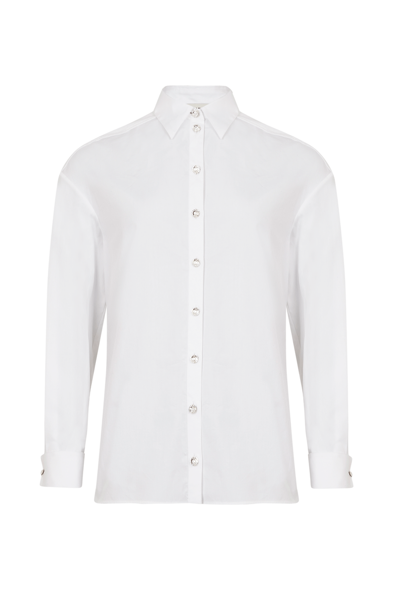 | Product Description | This season, the shirt – a wardrobe essential – is reinterpreted with the addition of Swarovski rhinestone buttons. |