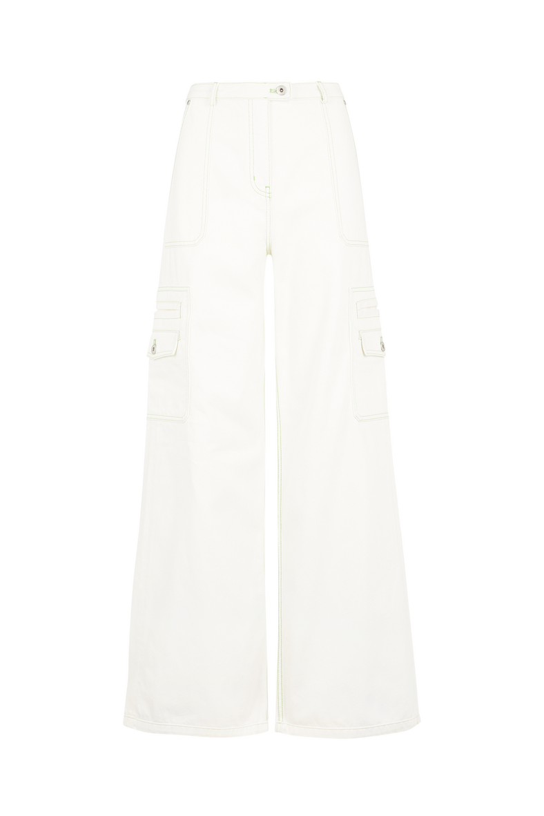 | Product Description | New for the Spring-Summer 2024 collection, these cargo pants redefine the brand’s codes of elegance. Crafted from white denim, they are high waisted and cut wide for maximum comfort. Green topstitching adds contrast to the volume. |